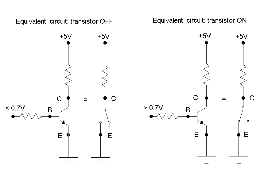 The arrow between the base and the emitter represents a P-N junction, or diode . The voltage VBE across these two terminals determines whether a current will flow between the C-E terminals.