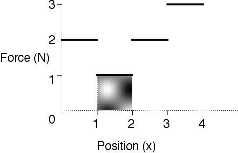 4. If the object (mass 2 kg) had velocity 2 m/s at position x = 0 m, what velocity will it have at position x = 4 m ?