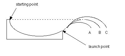 A projectile is at rest at the top of a frictionless ramp. It is released, picks up speed and finally leaves the ramp at an angle with respect to the ground as shown in the diagram below. Which is the only path for the projectile after it leaves the ramp?