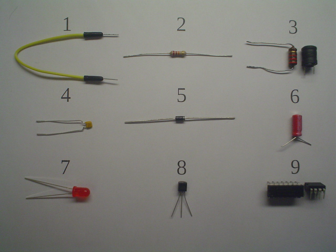 The zero-insertion-force socket accomodates components with two or three leads. Each lead is inserted into a hole with a different number. Note the pattern 1-2-3-1-1-1-1.