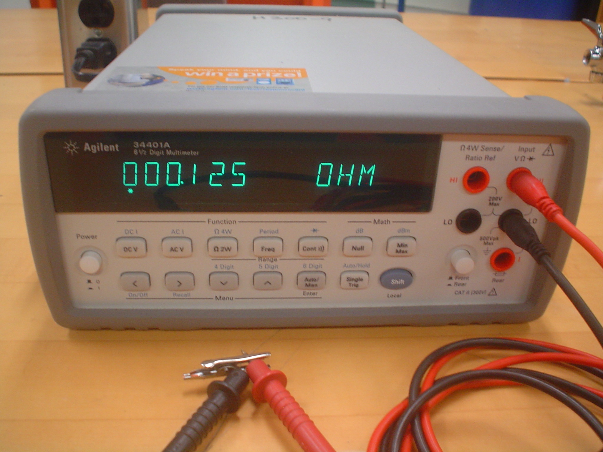 Measuring a 1 kΩ resistor (brown,black,red,gold) with the nominal component tolerance of 5%,