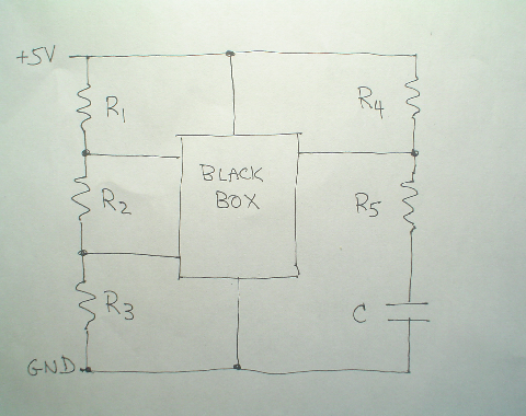 The sketch on the left displays a basic schematic of the mystery circuit, grouped into functional blocks.