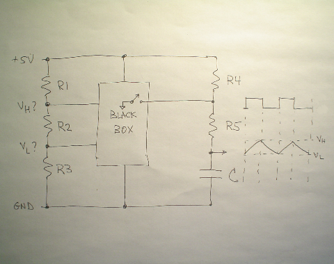 To the right is the resistor/capacitor network that was previously analysed. It was determined that transistor Q1, here inside the black box, controls the state of the R4-R5 node and hence the charging and discharging of the capacitor.