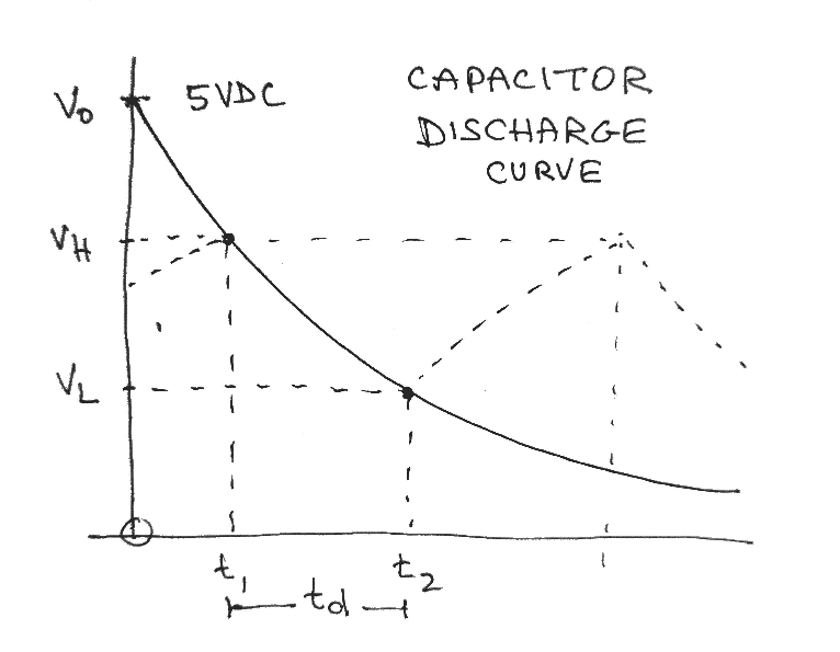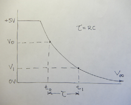 Recall that the capacitor discharging from V0 to V1 is given by