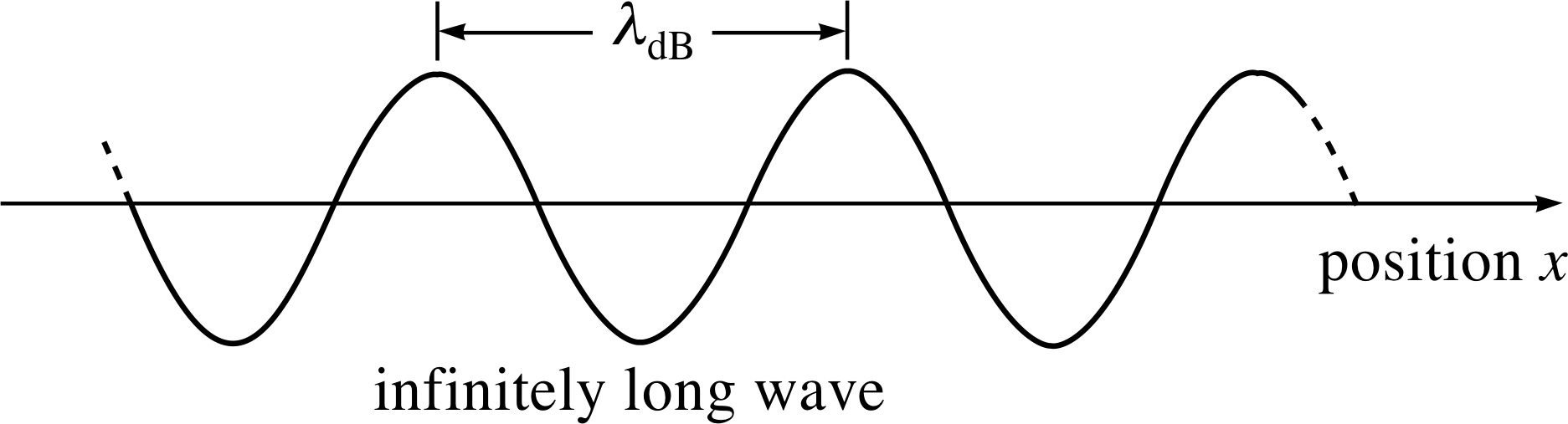 Figure 1 The profile of a de Broglie wave of fixed amplitude and wavelength λdB, corresponding to a particle moving in the positive x–direction with momentum px. Note that the figure shows a snapshot of the wave, which is actually travelling in the positive x–direction.