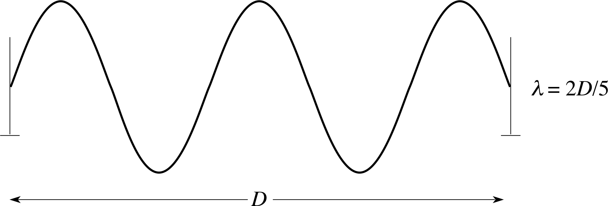 The spatial wavefunction that has five half wavelengths within the box is shown in Figure 11. The wavelength is given by: D = 5λ/2 and nx = 5.
