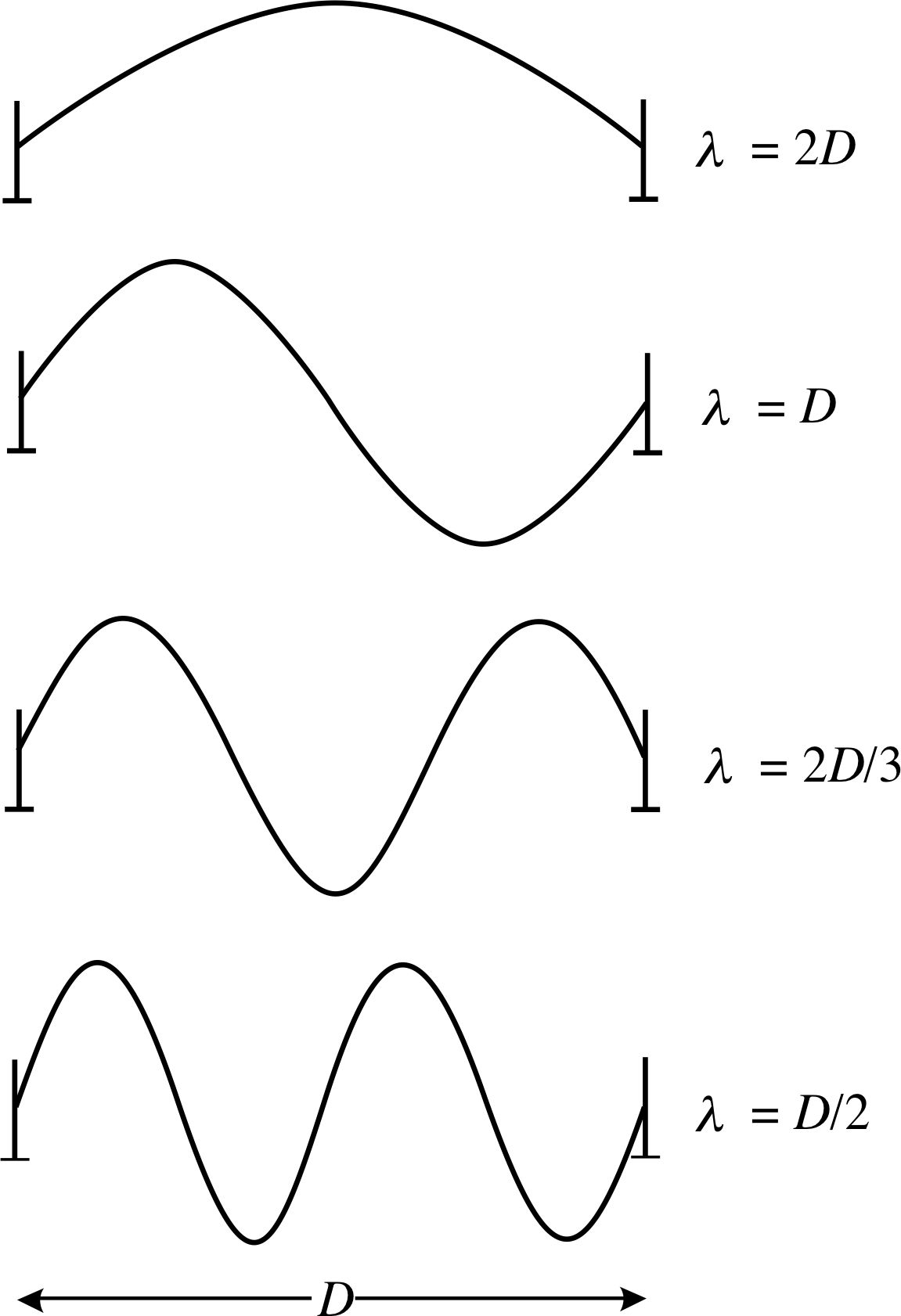Figure 6 Four of the standing wave modes that may be set up on a taut, elastic string that is fixed at each end.