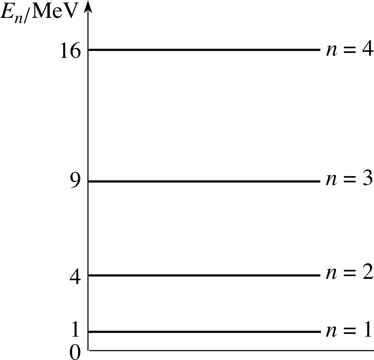 The energy levels of a particle in a one–dimensional box are: En = n2h2/(8mD2).