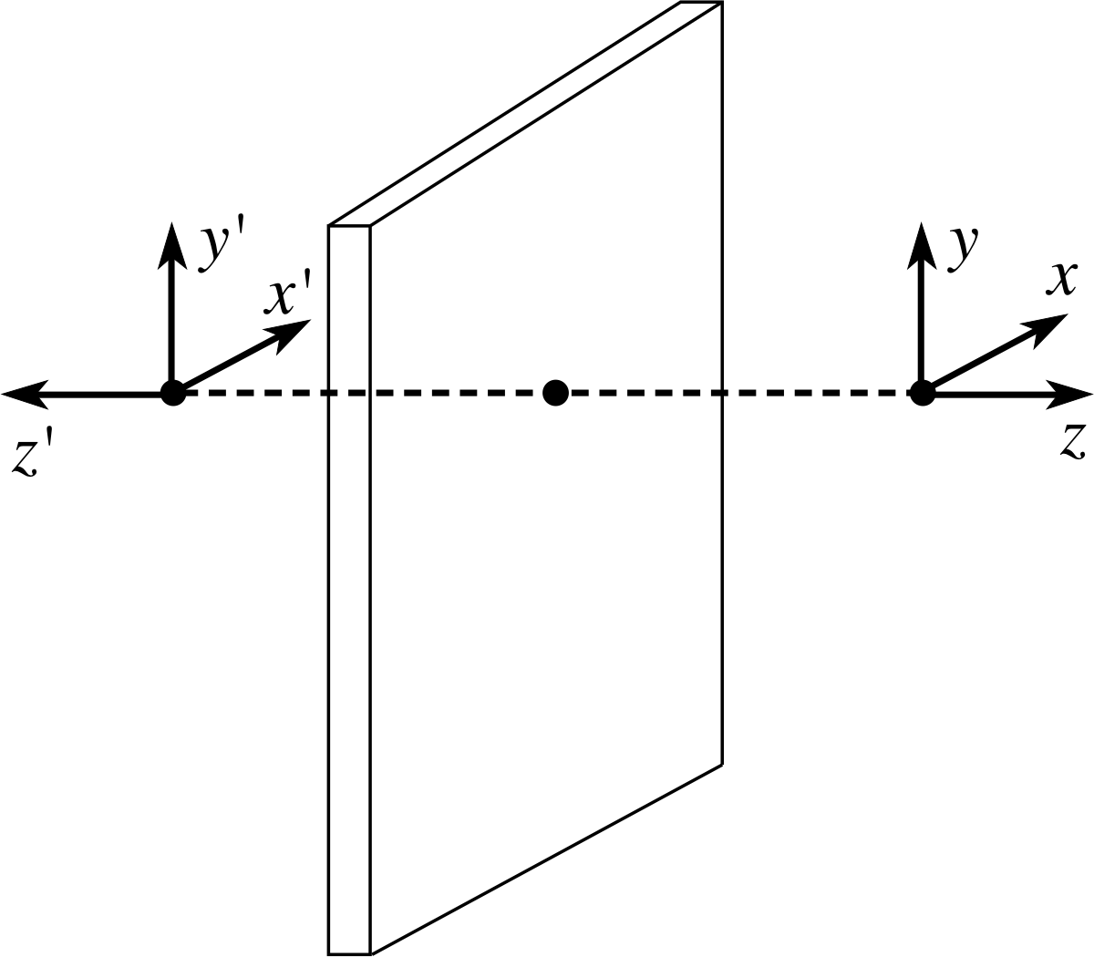 Figure 5 A coordinate system fixed in a mirror. (The mirror is in the (x, y) plane.)